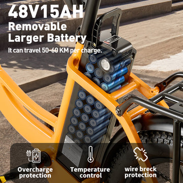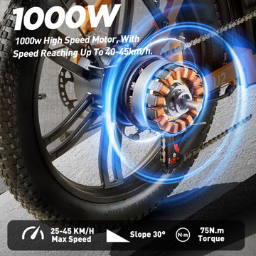 High-speed peak 1000W brushless geared hub motor with 75 Nm maximum torque provides you with maximum power and is unstoppable on rough terrain. We would love for you to feel the passion and enjoy the fun of riding!- Motor Torque: 75Nm